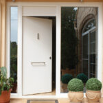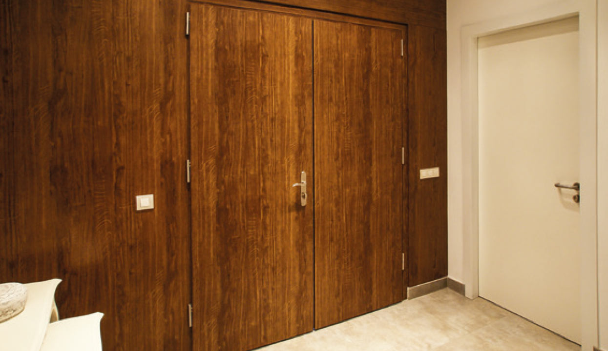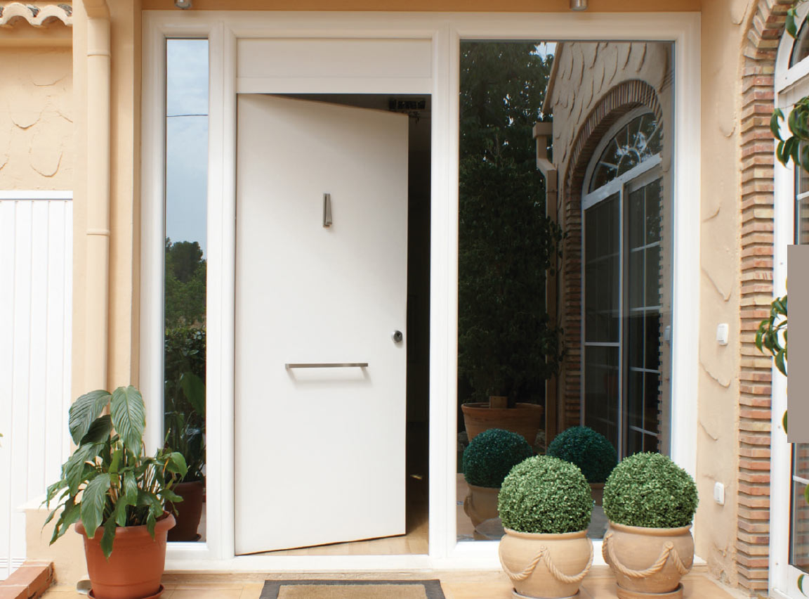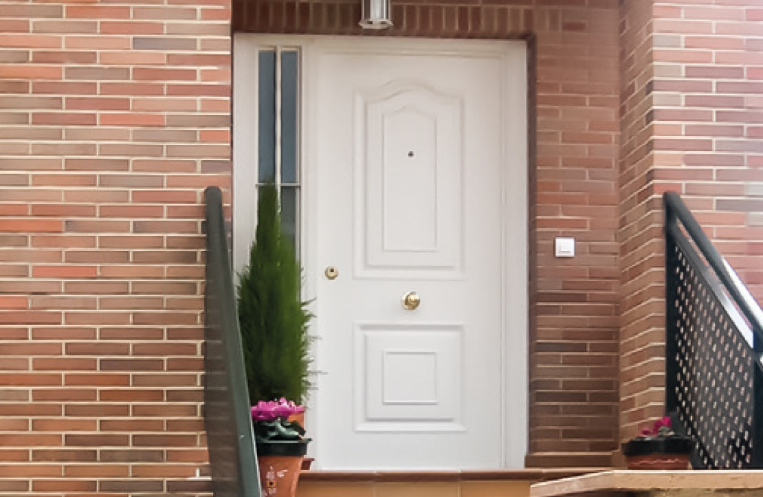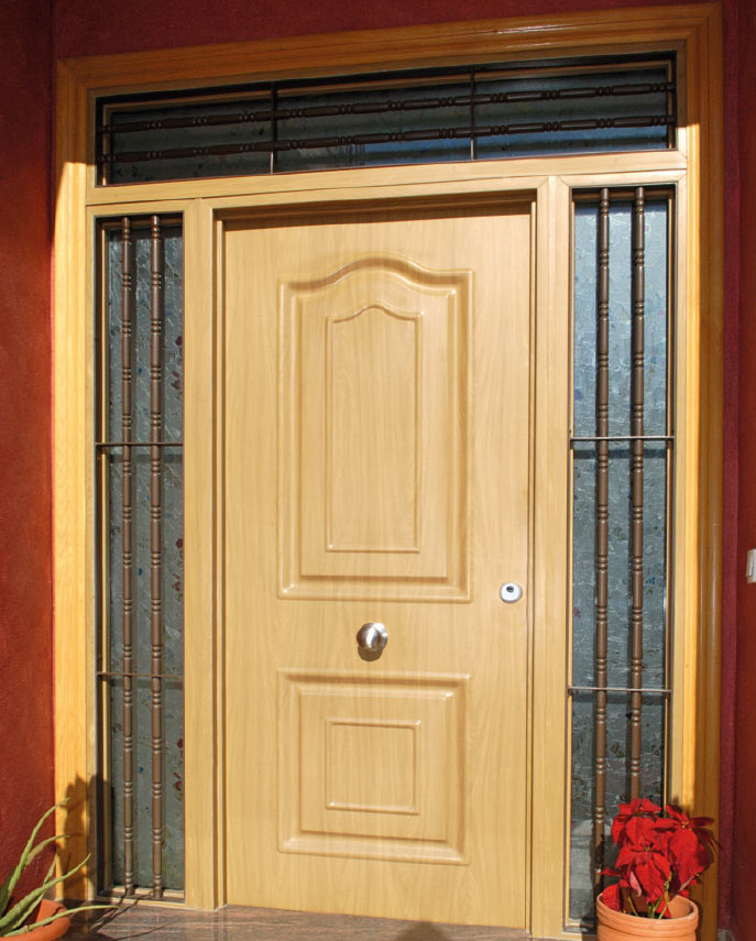 Puerta de seguridad con diseño clásico y con una amplia gama de acabados, colores y accesorios.